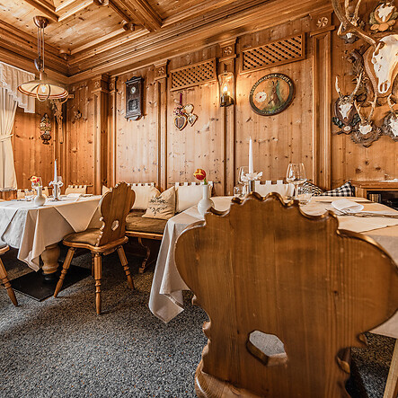 Sobald Sie über die Schwelle des Hotels Evaldo getreten sind, werden Sie sich wie zu Hause fühlen. Sie finden eine lichtdurchflutete Lobby vor, eine gemütliche Bar, eine ladinische Stube, wo Sie regionale Spezialitäten genießen können, einen Essbereich und im Sommer einen riesigen Garten mitten im Grünen mit Spielgeräten für Kinder, einem Riesenschachbrett und freie Bereiche, wo Sie die Natur genießen können.