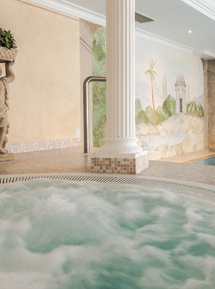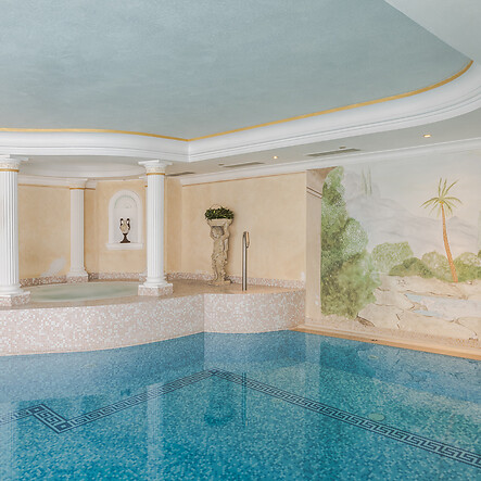 Gönnen Sie sich Wellness in den Dolomiten, die aus dem Wasser kommt. Tauchen Sie ein in eine angenehme und vertrauliche Atmosphäre und nehmen Sie sich Zeit für sich. Der Pool mit Gegenstromanlage und Hydromassage im Hotel Evaldo lädt Sie ein, neue Energie zu tanken und Ihr inneres Gleichgewicht zu finden.